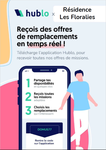 Dans une démarche d’amélioration continue de notre organisation et pour mieux répondre aux besoins de nos équipes, nous disposons désormais de la plateforme Hublo, un outil digital simple et efficace pour la gestion des remplacements.