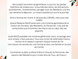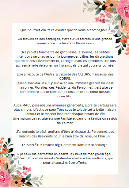 Les mots de Liliane, notre Chère Bénévoles et amie de la Résidence Les Floralies