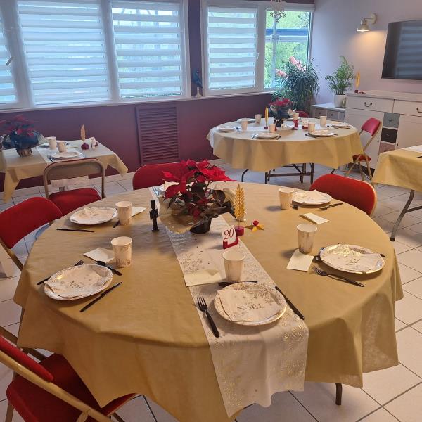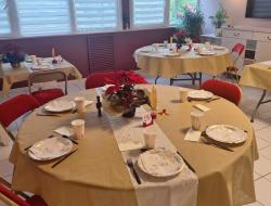 Résidents et équipe se mobilisent pour créer une ambiance chaleureuse : décorations, mise en place de la salle, choix du sapin et des couleurs festives avec un DRESS CODE rouge et dorée!